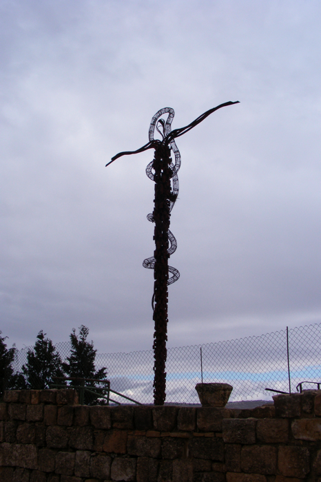 The Brazen Serpent sculpture, by Italian artist Giovanni Fantoni. It is symbolic of the bronze serpent taken by Moses into the desert, and the cross upon which Jesus was crucified.