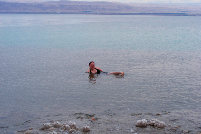 Mackenzie gracefully floating. It's hard to put your feet in the water, they just bob on top so balance is a little awkward until you just lay back.
