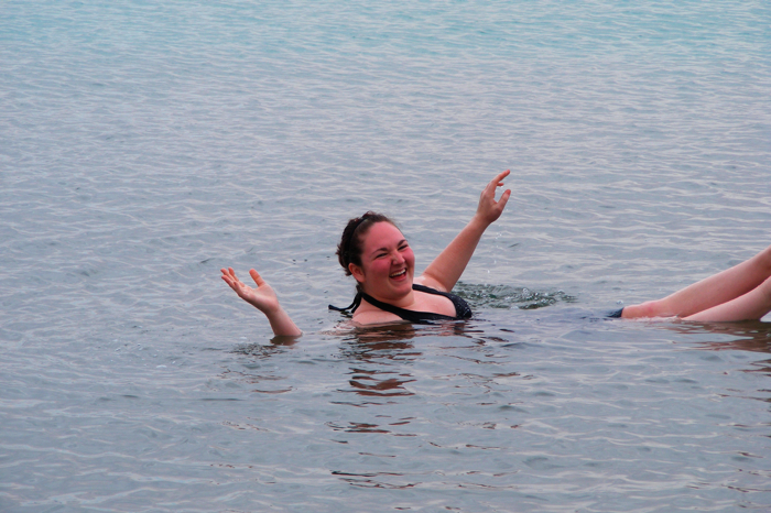 It was pretty shallow where we were, so I was trying to get her to sit on the bottom, but she couldn't get her butt down all the way.